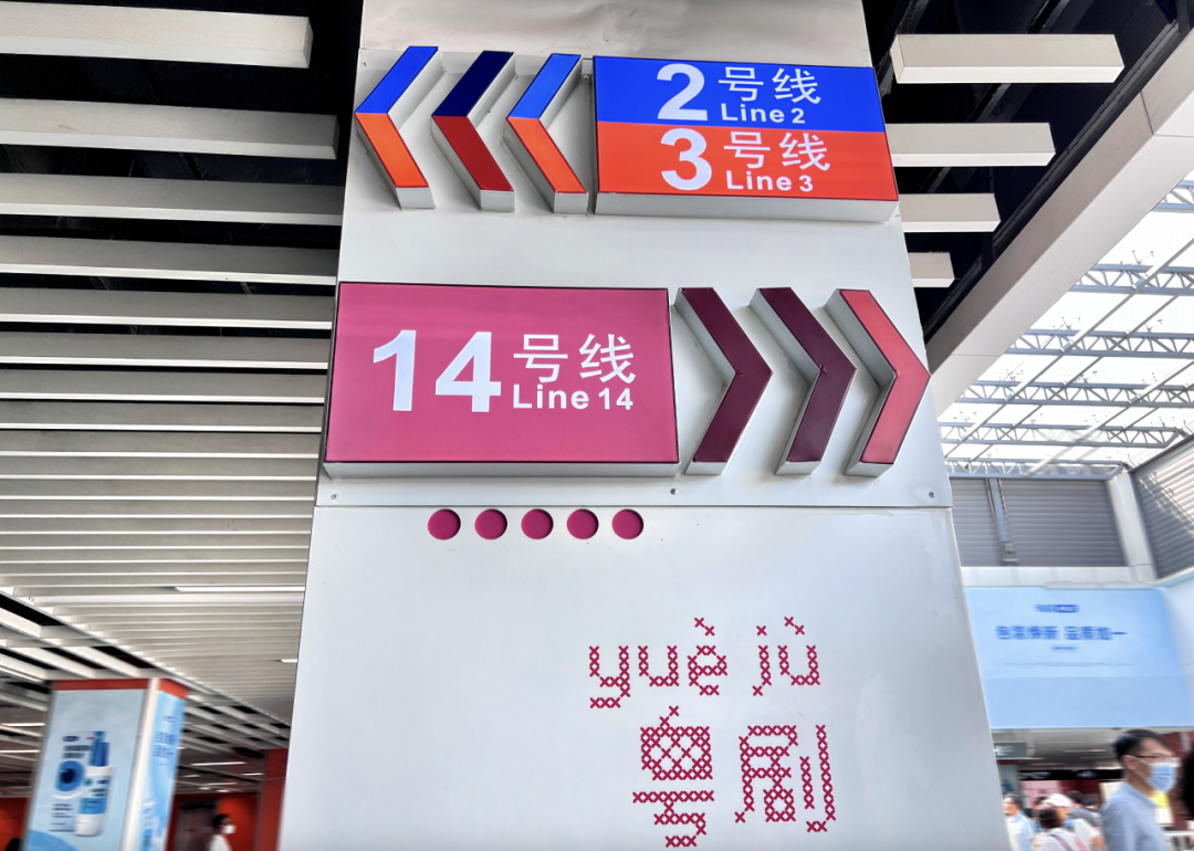 值得一提的是车站的 “展・旺” 主题设计,站厅立柱化身文化载体,通过 LED 屏幕动静结合地展示粤语、粤剧、广彩、广州美食、特色建筑等岭南文化,让原本单调的换乘空间变成了充满粤式韵味的迷你展厅。每天匆匆路过的乘客,抬头就能邂逅,这份小惊喜太戳人~